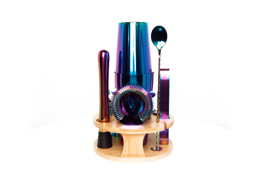 Набір вражає своїм яскравим, сучасним дизайном, який відразу привертає увагу. Його елементи мають дорогий, вишуканий вигляд і додають естетики кожному моменту приготування напоїв. Все організоване на зручній дерев'яній підставці — нічого не втрачається, все на своєму місці. Це не просто набір для змішування коктейлів, це — інструмент для створення настрою, емоцій і спогадів.